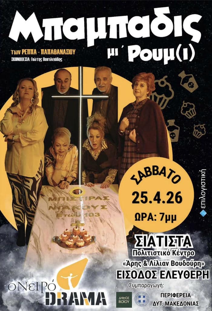 Ο Δήμος Βοΐου, σε συνδιοργάνωση με την Περιφέρεια Δυτικής Μακεδονίας, σας προσκαλεί στη θεατρική παράσταση της ομάδας «Ονειρόδραμα», με τίτλο «Μπαμπαδις μι’ Ρουμ(ι)».