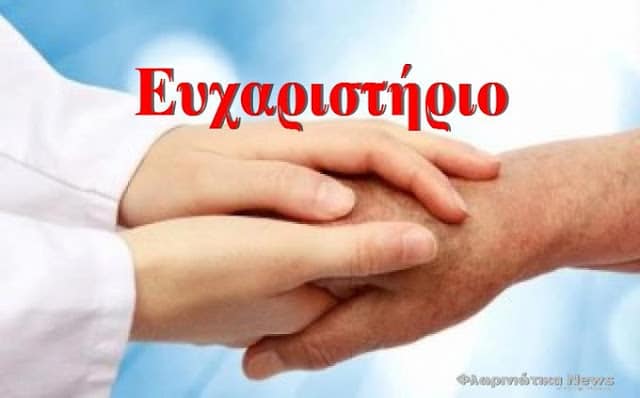 Ευχαριστήριο μήνυμα στο νοσοκομείο Κοζάνης καθώς και στο Ιπποκράτειο Νοσοκομείο Θεσσαλονίκης